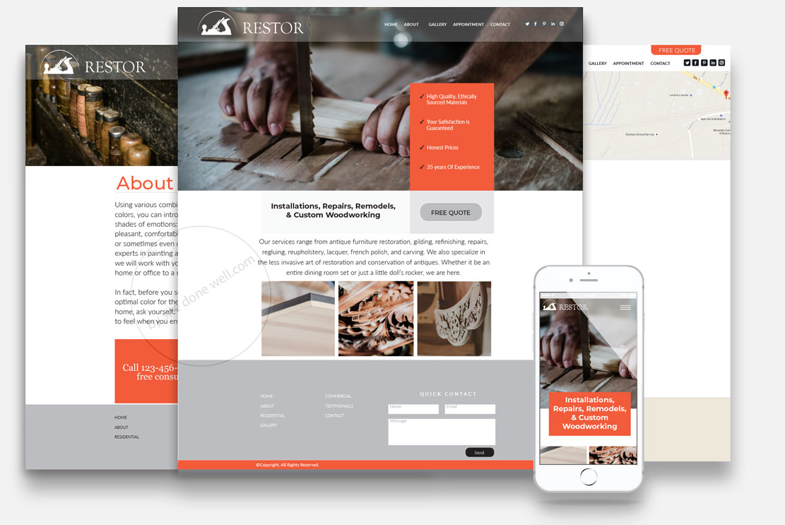 Restor SiteStarter is an ideal starting point for companies in the home improvement and decoration industry. This theme is perfect for businesses specializing in custom woodworking, wallpaper consultants, remodeling and other related services. It features a modern design with clean lines with easy navigation to showcase your work and services in a professional and attractive manner. The Restor SiteStarter can be customized to fit your unique branding and style while providing an excellent user experience for your customers. With its user-friendly features and professional design, Restor SiteStarter is an excellent choice for any home improvement or decoration company looking to establish a strong online presence.